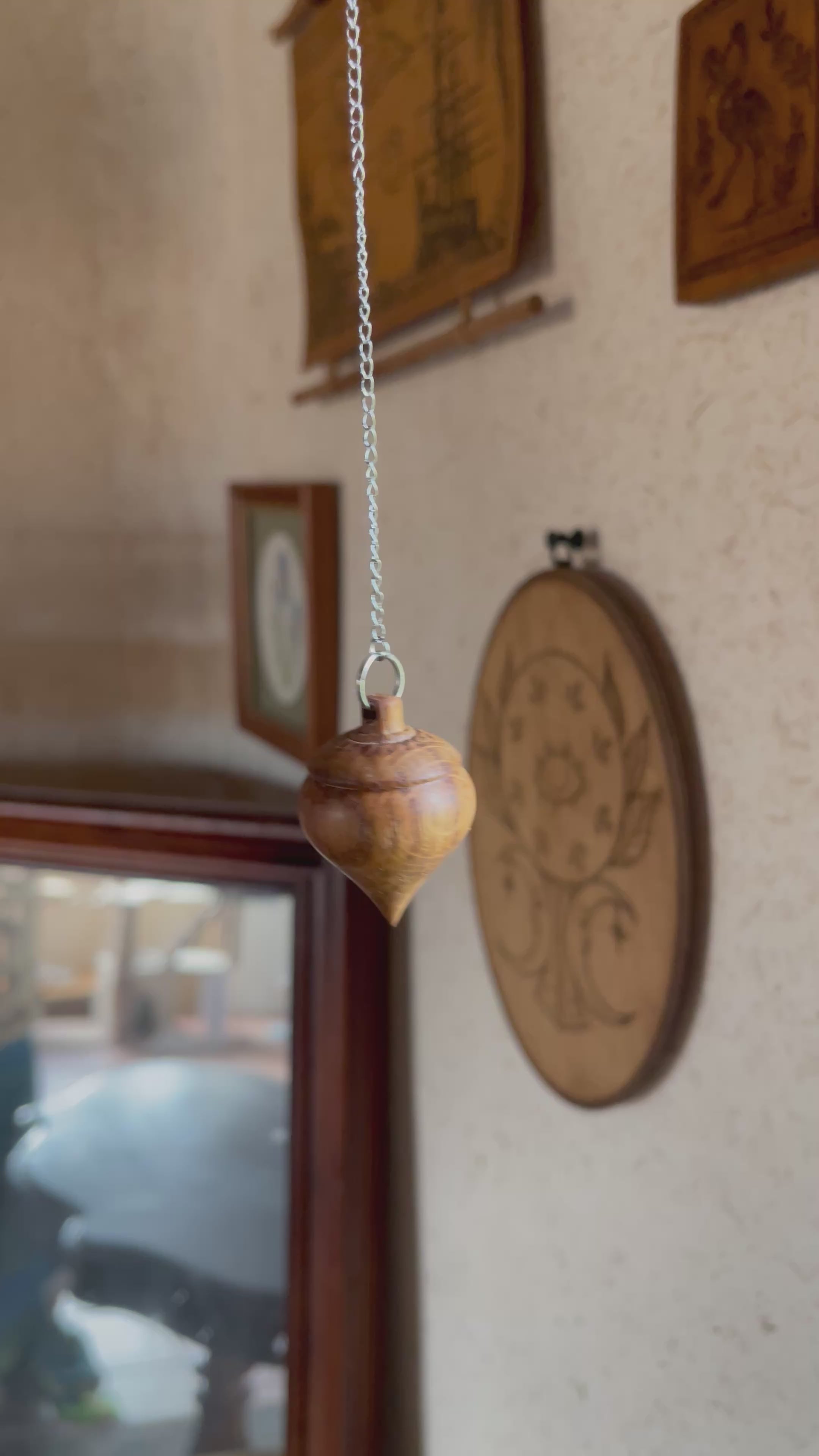 Ce pendule en bois de chêne, façonné à la main, adopte une élégante forme de goutte, idéale pour une prise en main fluide et un balancement précis. Son bois est protégé par une finition naturelle à la cire d’abeille et à l’essence de térébenthine, mettant en valeur ses nuances chaleureuses tout en préservant sa douceur. Il est agrémenté d’une chaîne en acier inoxydable et se termine par une perle en cornaline, pierre reconnue pour ses vertus énergisantes et stabilisantes. Un outil unique, aussi esthétique qu’efficace pour la radiesthésie et la divination.